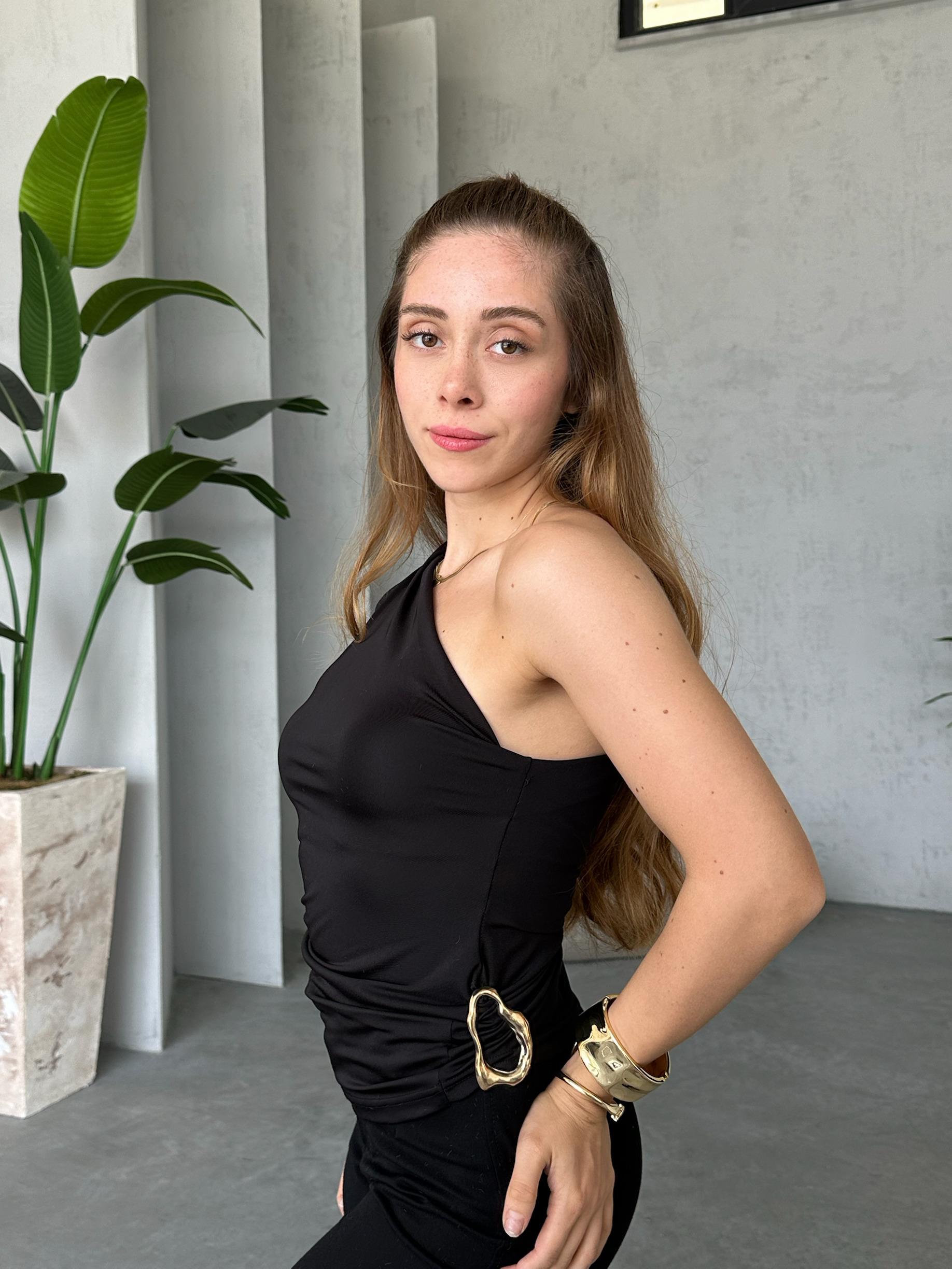 Aksesuarlı Tek Omuz Bluz Kahverengi Aksesuarlı Tek Omuz Bluz Beyaz