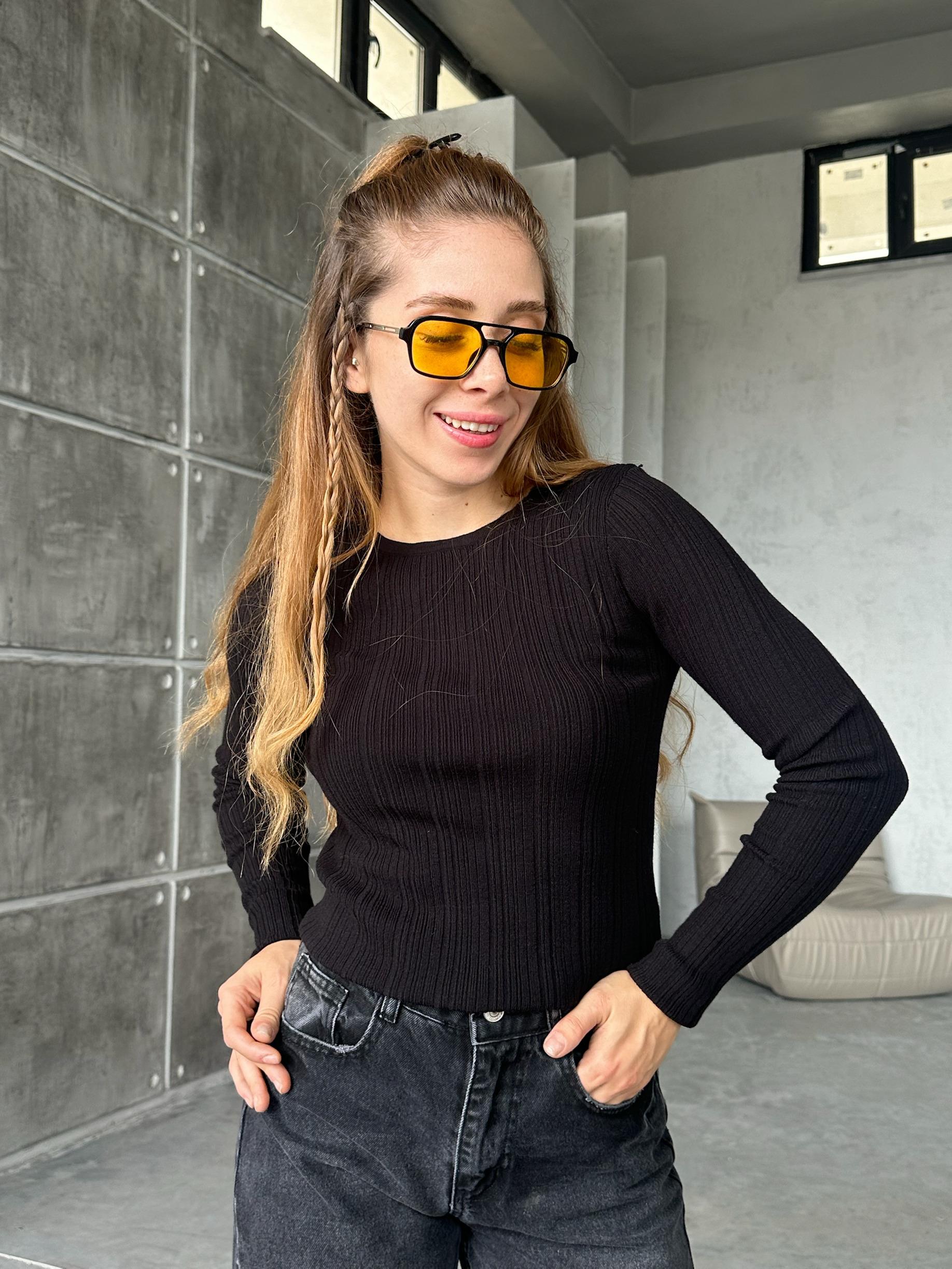 Bisiklet Yaka Fitilli Örgü Kazak Siyah