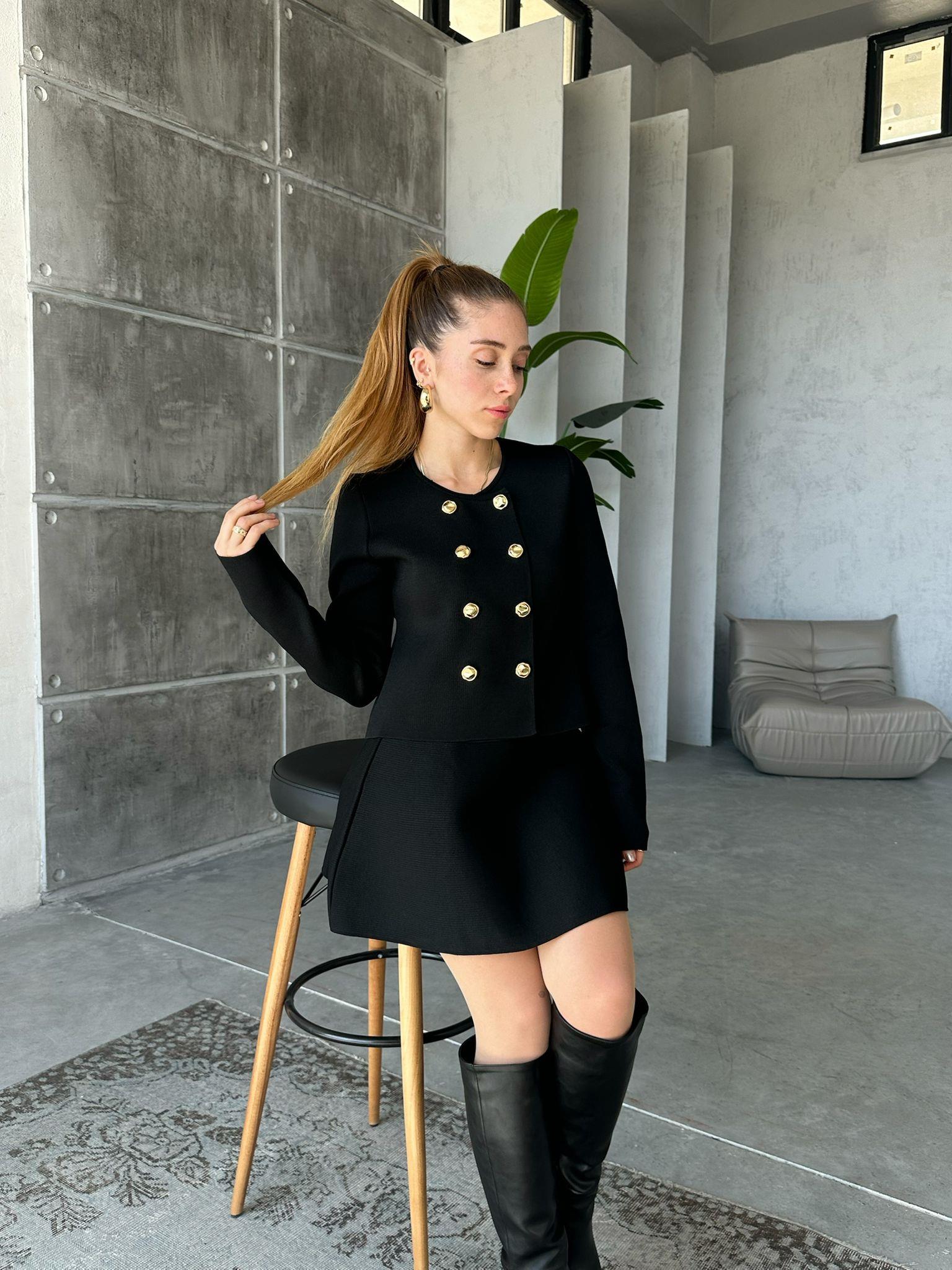 Çelik Örme Kumaş Triko Etekli Takım Siyah