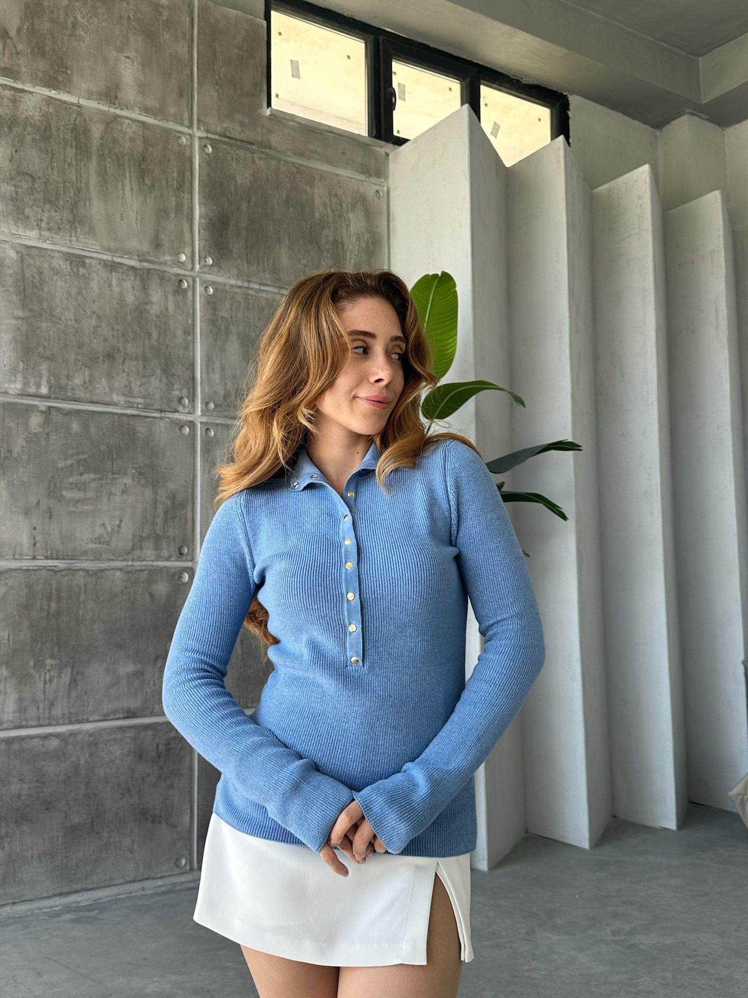 Çıtçıtlı Boğazlı Kazak Mavi