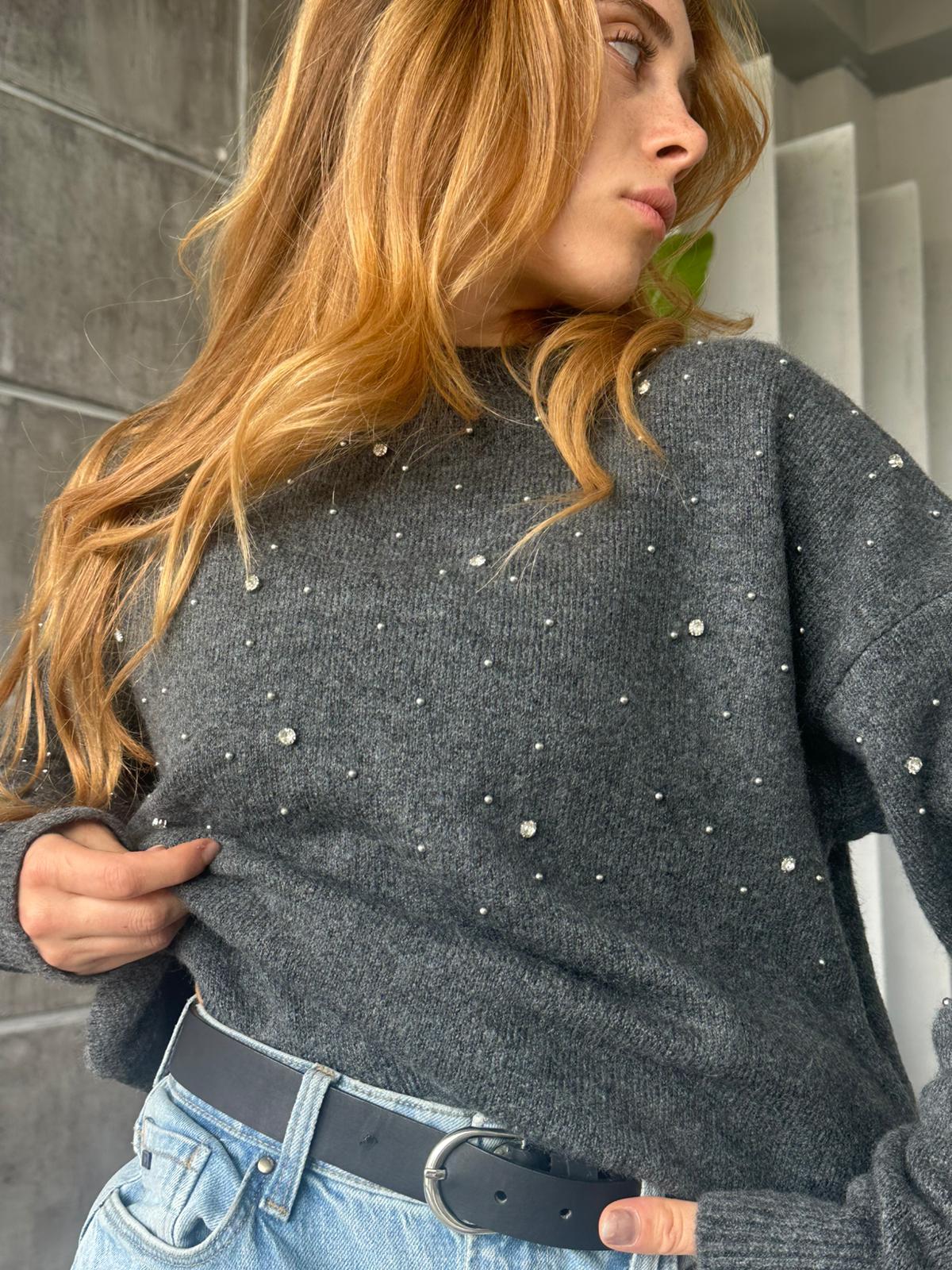Dağınık Taşlı Kazak Siyah Dağınık Taşlı Kazak Beyaz