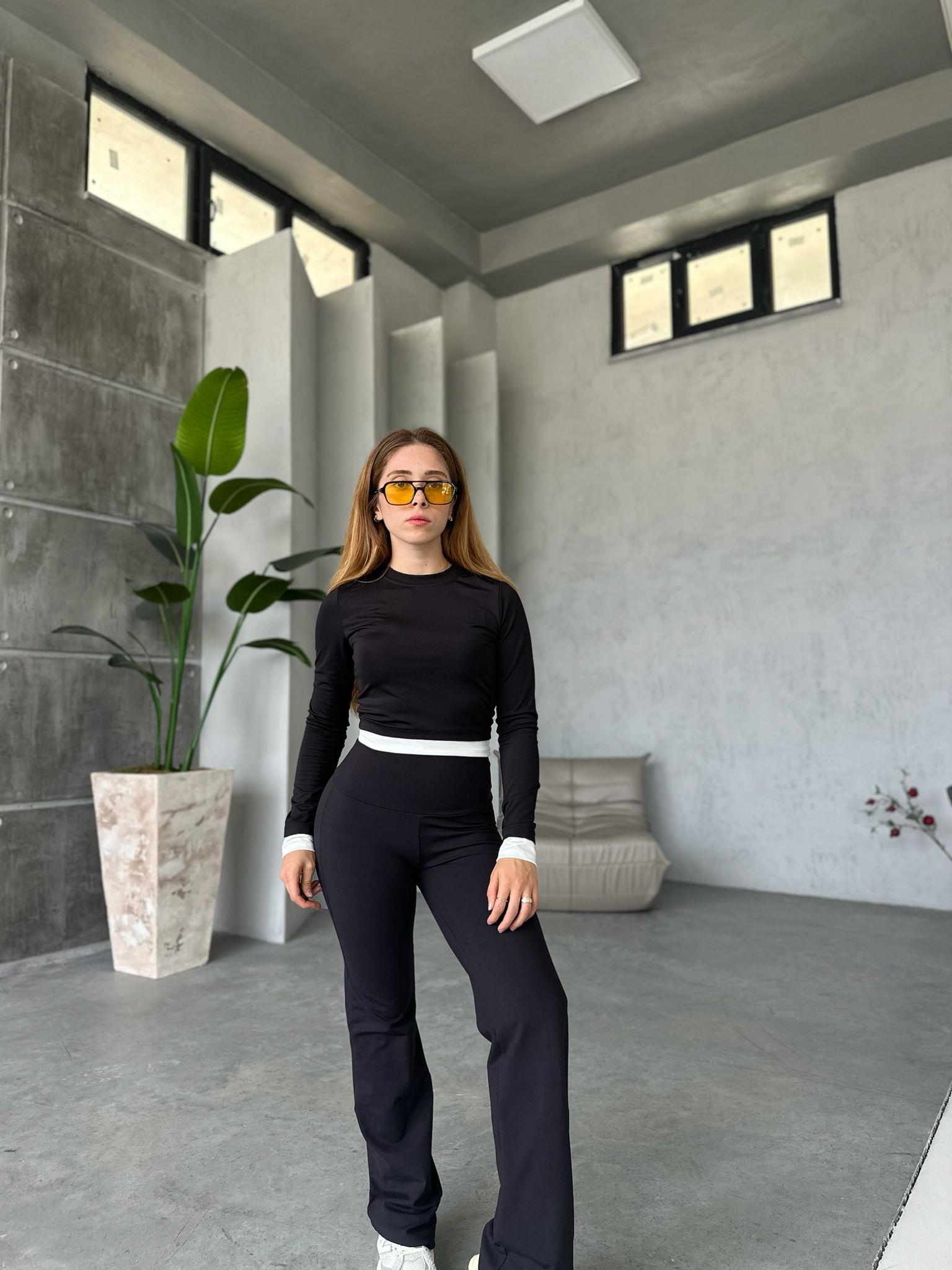 Dalgıç Kumaş Çift Renk Bluz Siyah