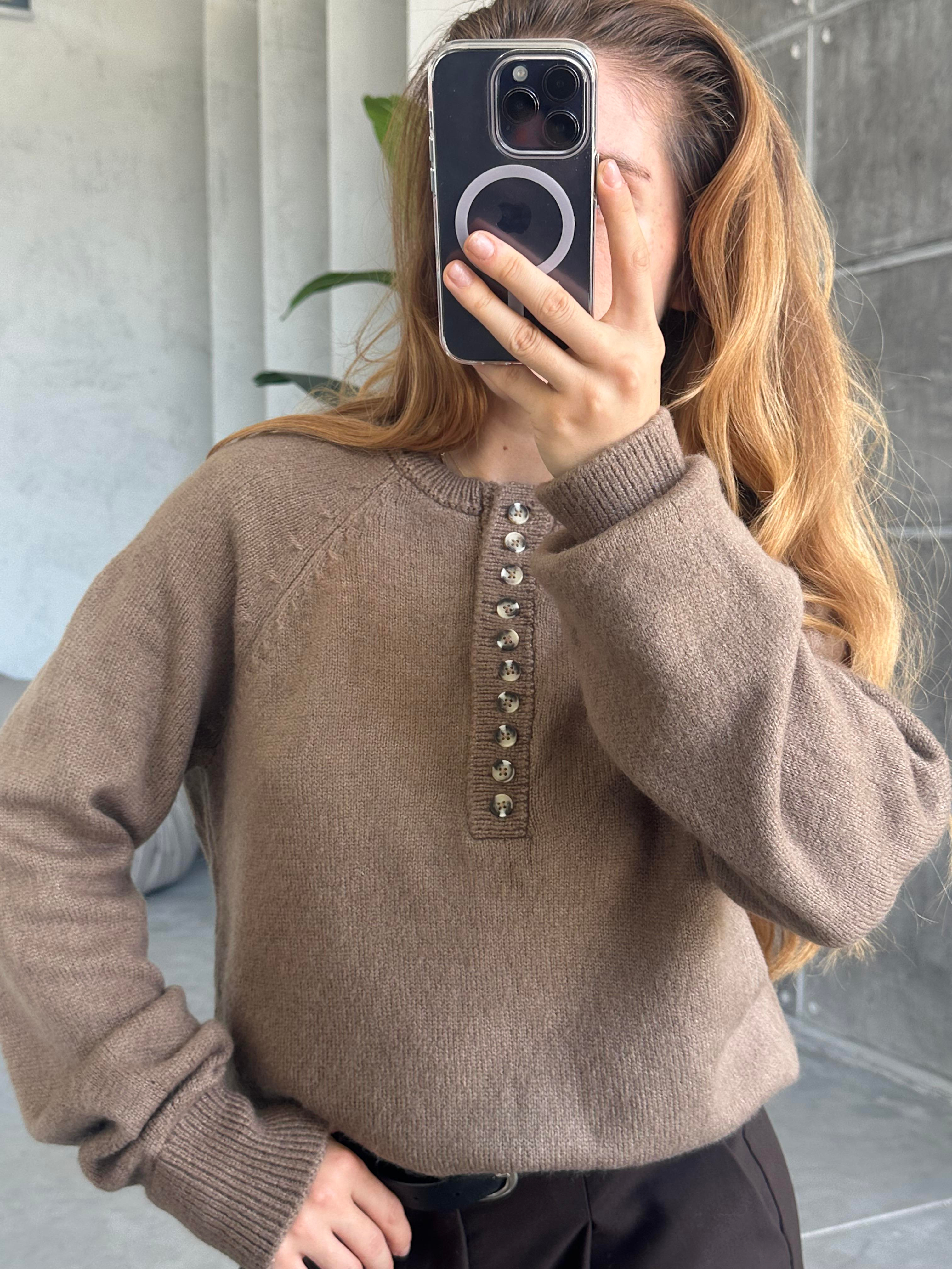 Düğmeli Kazak Beyaz Düğmeli Kazak Yeşil