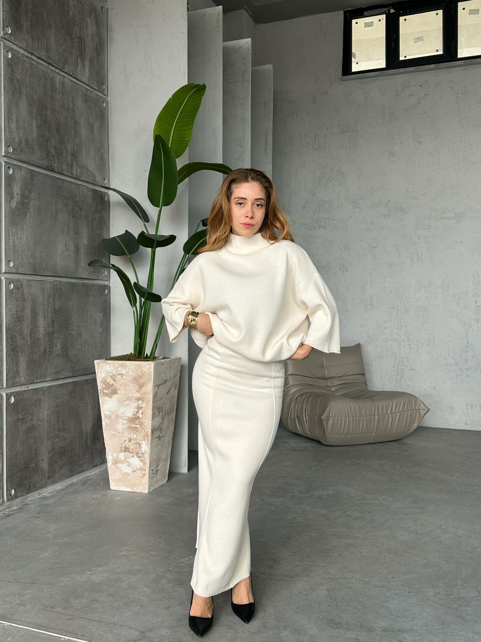 Etekli Geniş Kollu Triko Takım Kahve Etekli Geniş Kollu Triko Takım Bordo Etekli Geniş Kollu Triko Takım Siyah