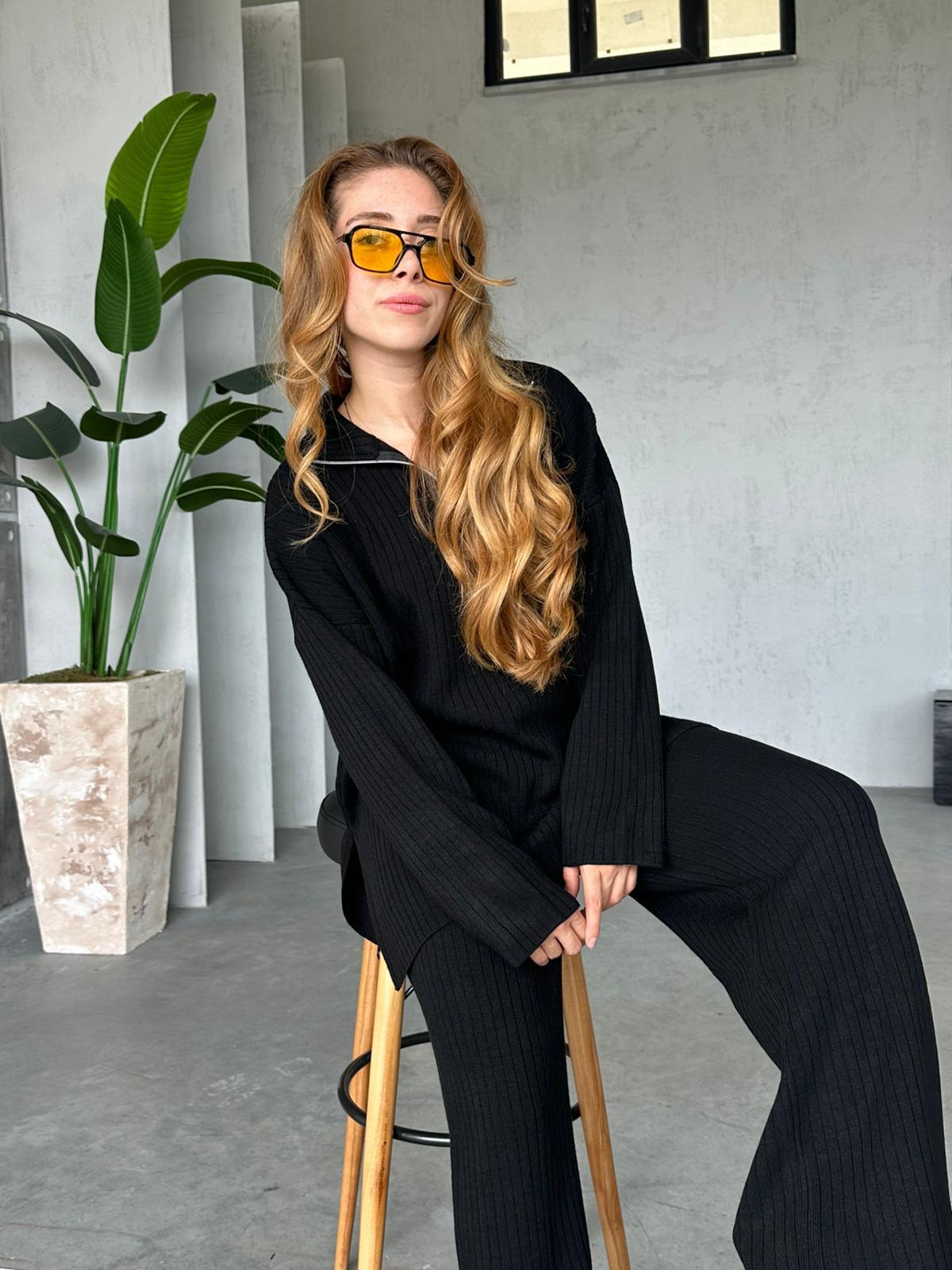 Fermuarlı Triko Takım Siyah