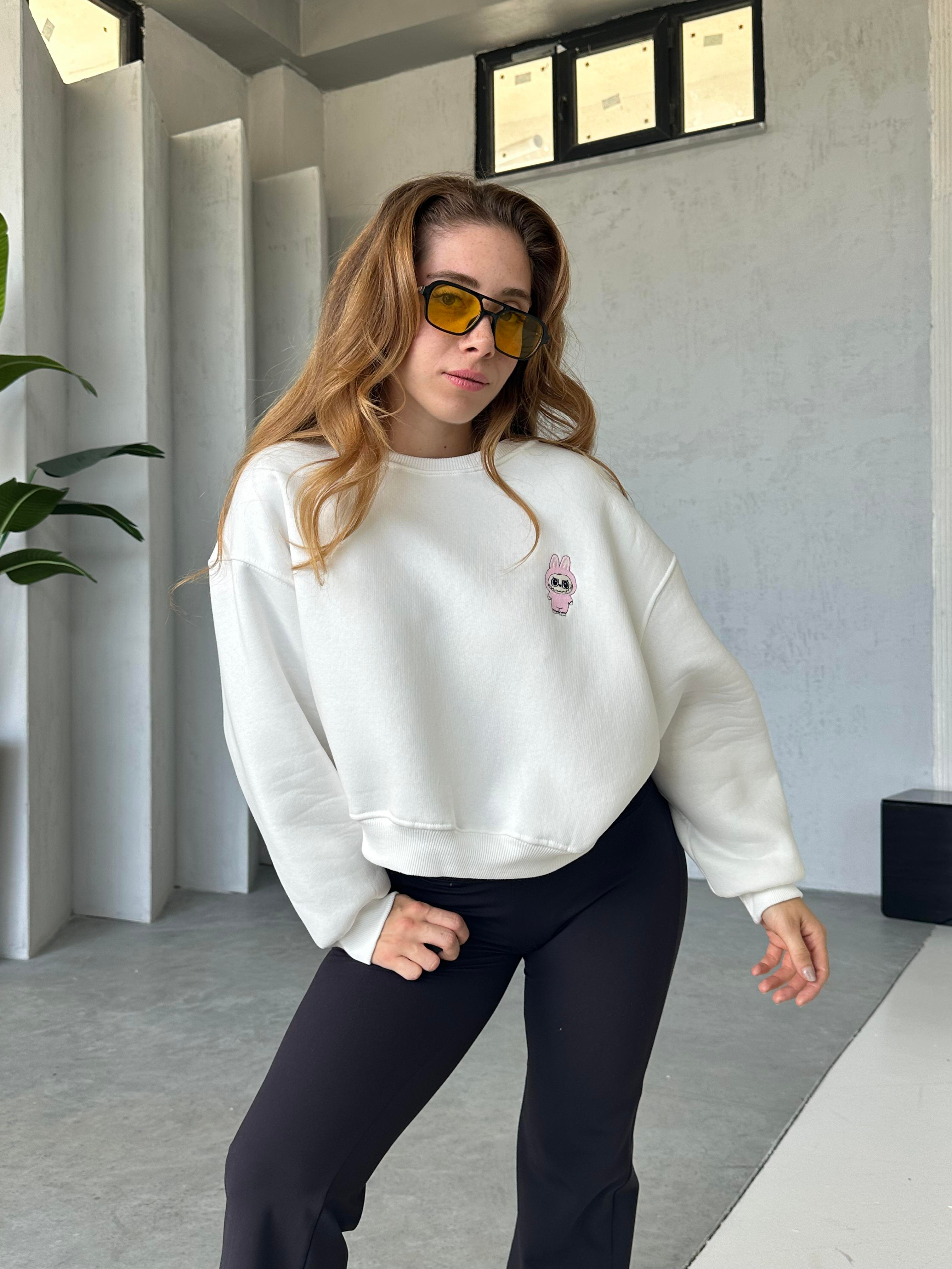 Labunu Nakışlı Sweatshirt Beyaz