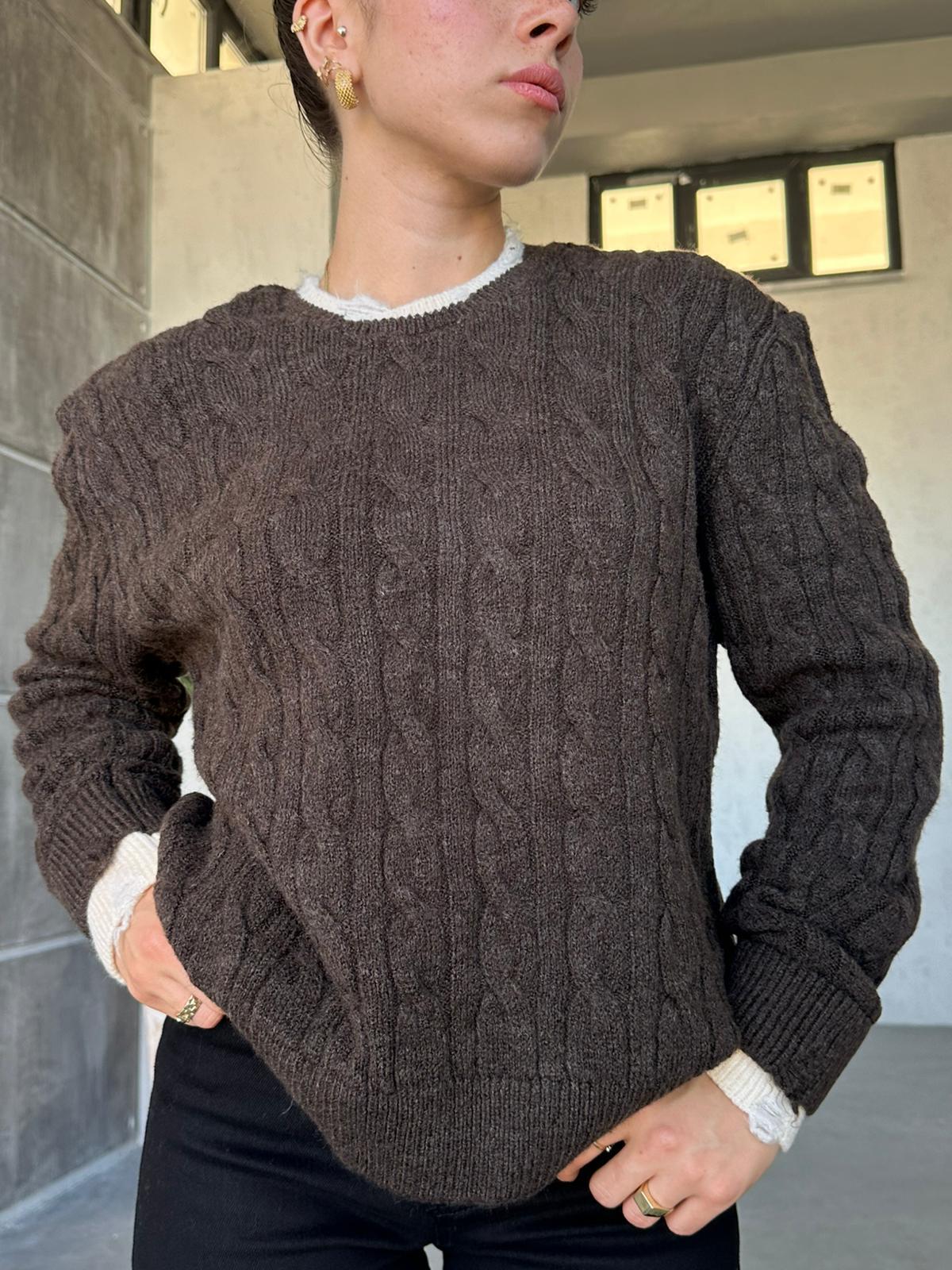 Yakadan Yırtıklı Kazak Bordo Yakadan Yırtıklı Kazak Krem